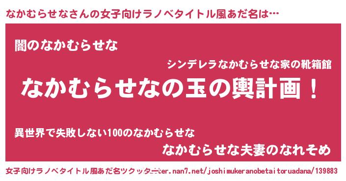 | 伝説のあだ名 | 『救世主となる錬金術士なかむらせな』 |
