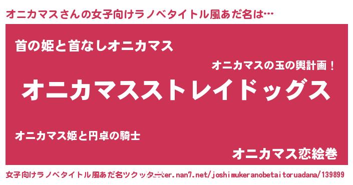| ヘコむあだ名 | 『オニっふぃ~』『オニカマス(笑)』 |