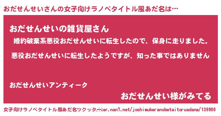 | 男性向けラノベタイトル風あだ名 | 『この素晴らしい世界におだせんせいを!』 |