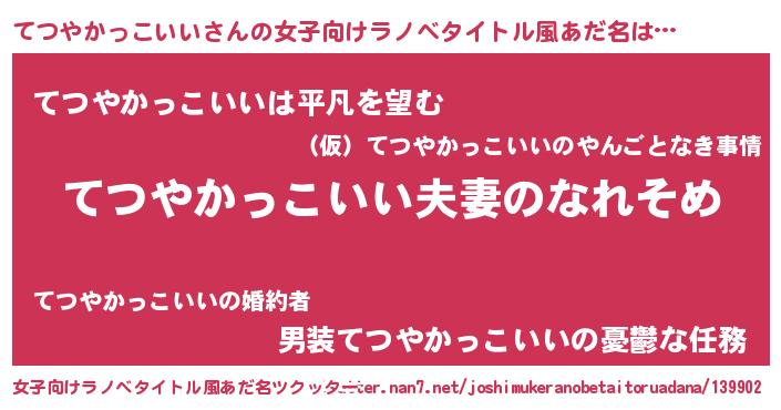 | 男性向けラノベタイトル風あだ名 | 『おまえをオタクにしてやるから、俺をてつやかっこいいにしてくれ! 』 |