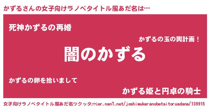 | 男性向けラノベタイトル風あだ名 | 『Re:かずるから始める異世界生活』 |