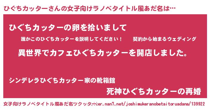| 男性向けラノベタイトル風あだ名 | 『誰もが恐れるあのひぐちカッターが、ぼくの専属メイドになるようです。』 |