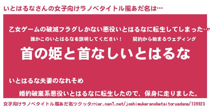 | 男性向けラノベタイトル風あだ名 | 『はたらくいとはるなさま!』 |