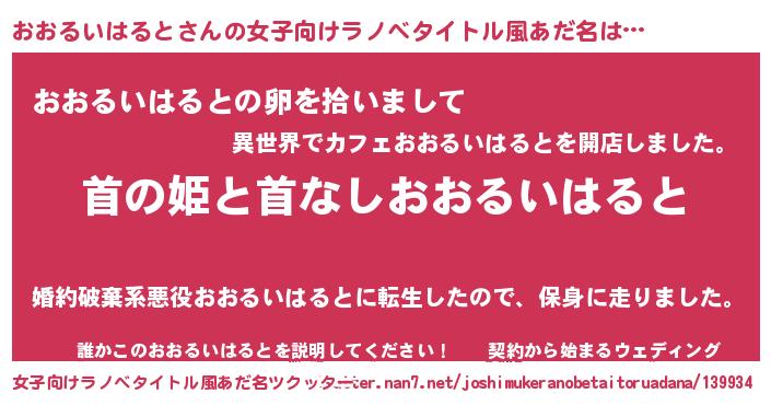 | 男性向けラノベタイトル風あだ名 | 『はたらくおおるいはるとさま!』 |