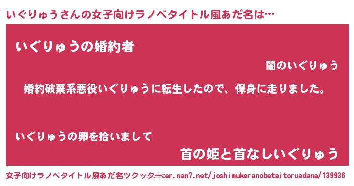| 男性向けラノベタイトル風あだ名 | 『イグリュウスレイヤー』 |