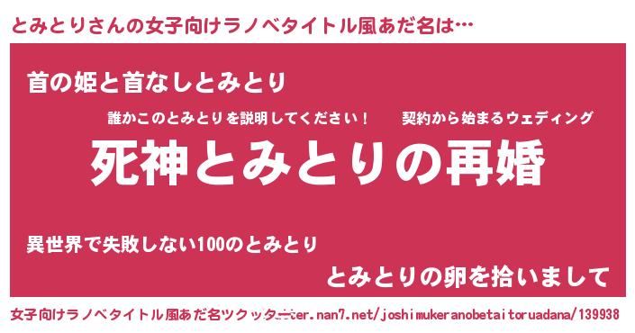 | 男性向けラノベタイトル風あだ名 | 『ノーゲーム・ノートミトリ』 |