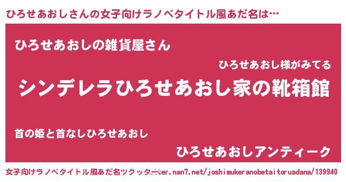 | 男性向けラノベタイトル風あだ名 | 『緋弾のヒロセアオシ』 |