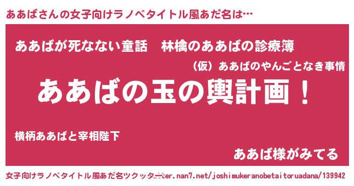 | 胡散臭い通販商品みたいなあだ名 | 『あなたにだけ特別に提供する限定10本のレアな日本酒…その名も「ああば」』 |