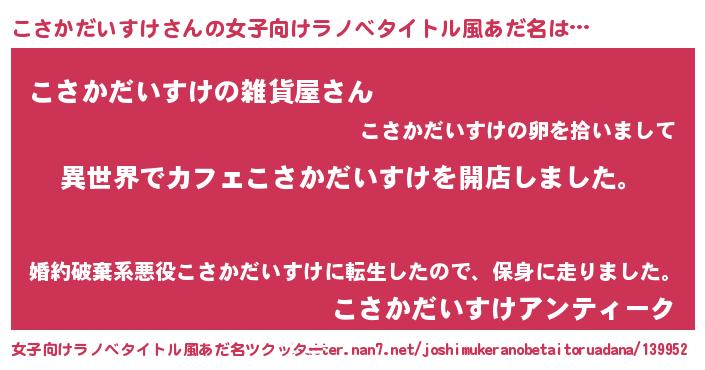 | 男性向けラノベタイトル風あだ名 | 『誰もが恐れるあのこさかだいすけが、ぼくの専属メイドになるようです。』 |