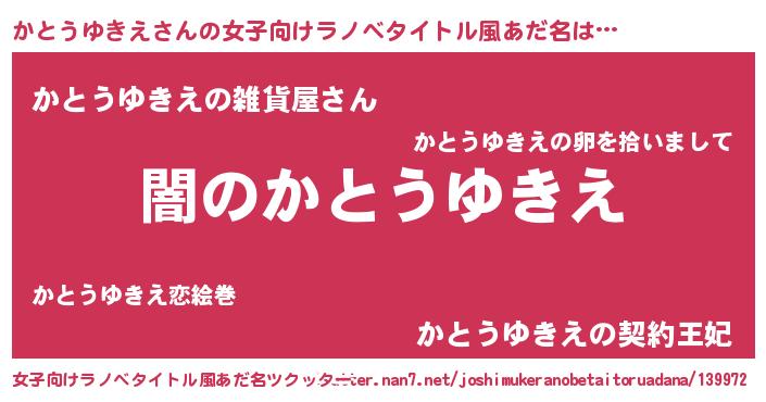 | 男性向けラノベタイトル風あだ名 | 『Re:かとうゆきえから始める異世界生活』 |