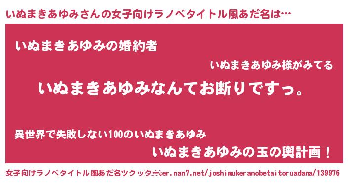 | 肩書あだ名 | 『いぬまきあゆみ総統』 |