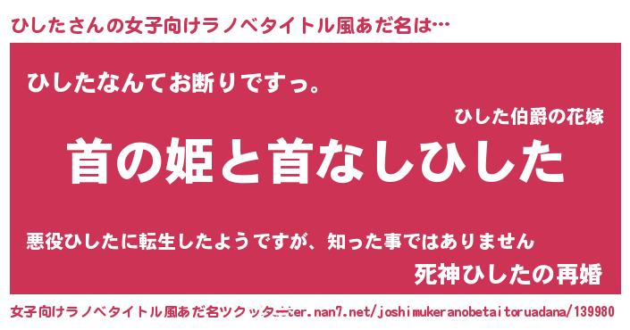 | 胡散臭い通販商品みたいなあだ名 | 『テレビで話題の高麗人参…その名も「ひした」』 |