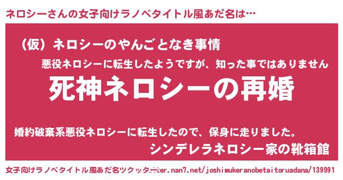 | 男性向けラノベタイトル風あだ名 | 『ノーゲーム・ノーネロシー』 |