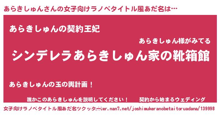 | 男性向けラノベタイトル風あだ名 | 『冴えないあらきしゅんの育てかた』 |