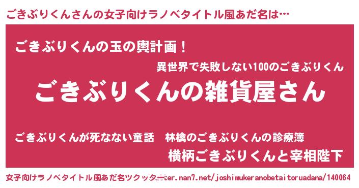 | 男性向けラノベタイトル風あだ名 | 『やはりごきぶりくんの青春ラブコメはまちがっている 』 |