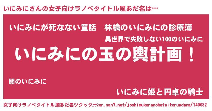 | 意味不明あだ名 | 『なめこ科いにみに属』『自称いにみに』 |