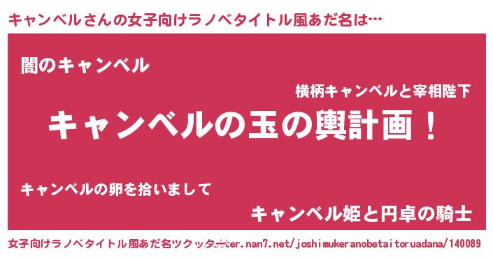 | 男性向けラノベタイトル風あだ名 | 『転生したらキャンベルだった件』 |