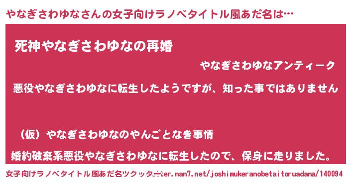 | 男性向けラノベタイトル風あだ名 | 『この素晴らしい世界にやなぎさわゆなを!』 |