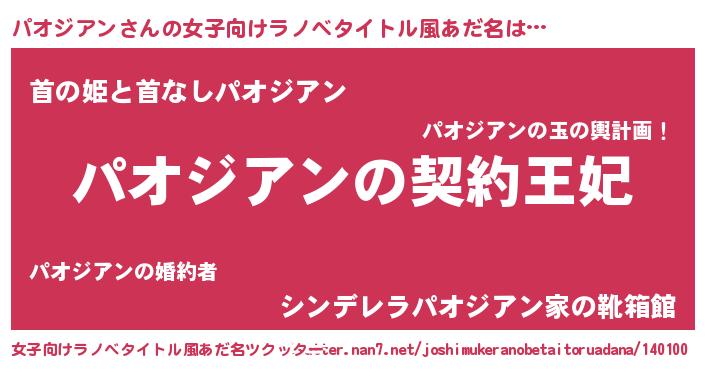 | 男性向けラノベタイトル風あだ名 | 『パオジアンという概念が存在しない退屈な世界 』 |
