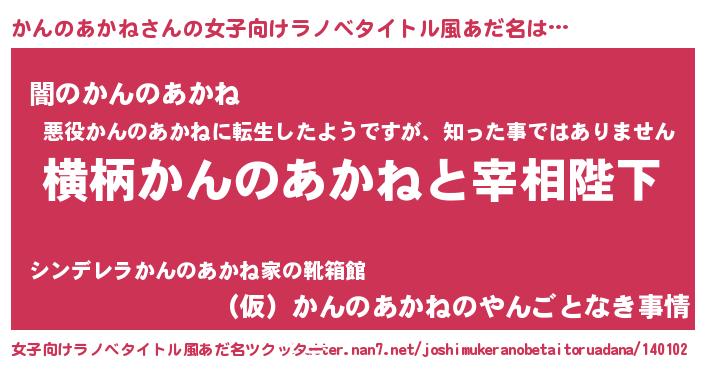 | 男性向けラノベタイトル風あだ名 | 『かんのあかねに滅ぼされるだけの簡単なお仕事です』 |