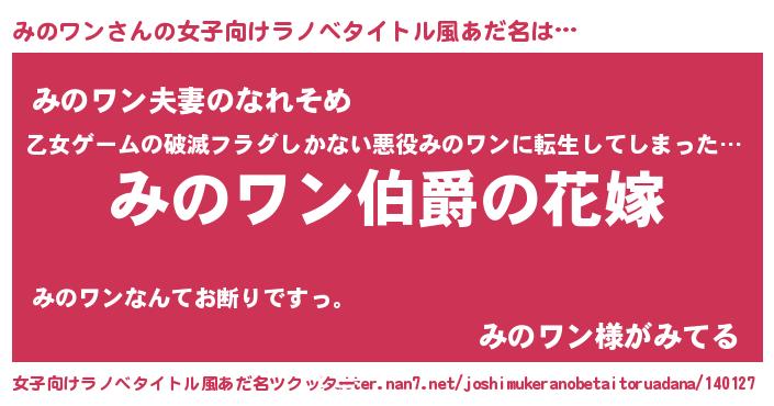 | 男性向けラノベタイトル風あだ名 | 『うちの娘の為ならば、俺はもしかしたらみのワンも倒せるかもしれない。』 |
