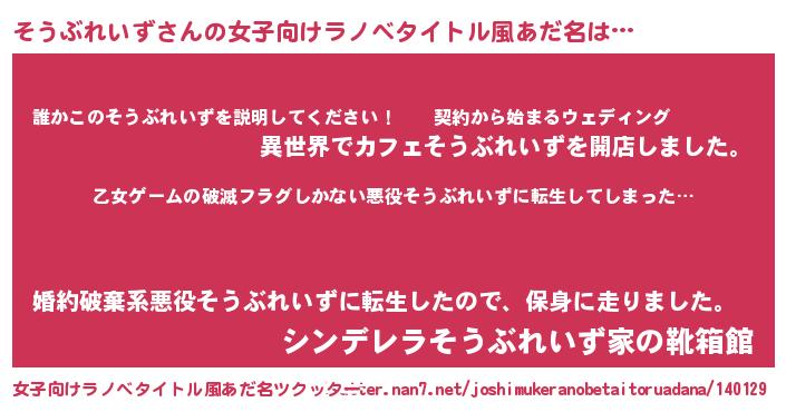| 胡散臭い通販商品みたいなあだ名 | 『世界中を虜にした世界で10本だけ現存している希少なブランデー…その名も「そうぶれいず」』 |