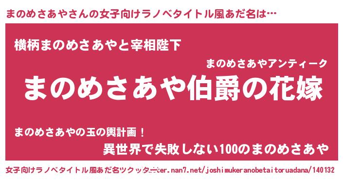 | 男性向けラノベタイトル風あだ名 | 『やはりまのめさあやの青春ラブコメはまちがっている 』 |