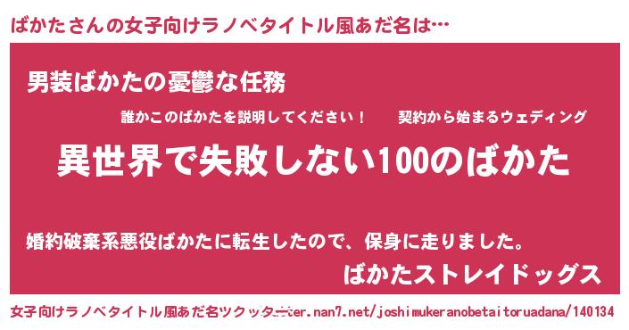 | 男性向けラノベタイトル風あだ名 | 『ばかたという概念が存在しない退屈な世界 』 |