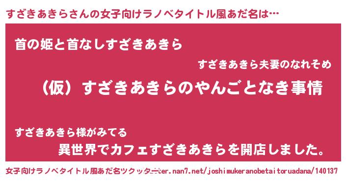| 男性向けラノベタイトル風あだ名 | 『すざきあきらの憂鬱』 |