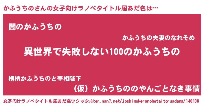 | 胡散臭い通販商品みたいなあだ名 | 『絶対に幸福をもたらす健康食品…その名も「かふうちの」』 |