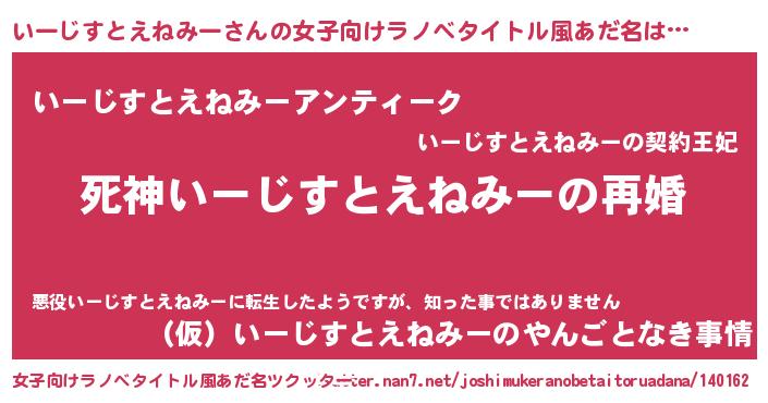| ヘコむあだ名 | 『いーにゅー』『いーじすとえねみー(笑)』 |