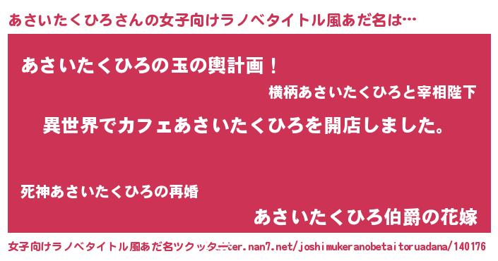 | 意味不明あだ名 | 『永久保存あさいたくひろ』 |