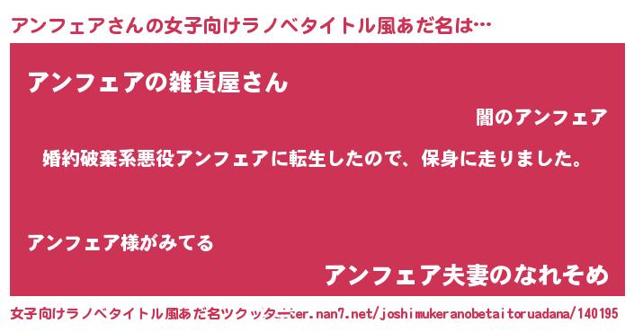 | 男性向けラノベタイトル風あだ名 | 『アンフェアスレイヤー』 |