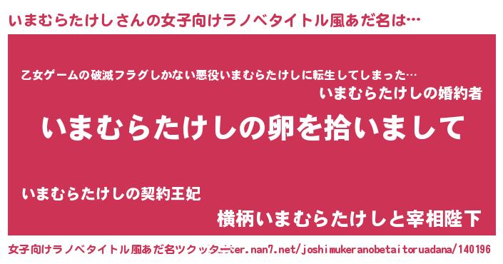 | 意味不明あだ名 | 『とにかく怪しいいまむらたけし』 |