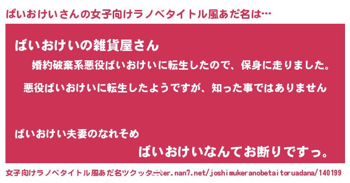 | 意味不明あだ名 | 『住所不定無職ばいおけい(81歳)』 |