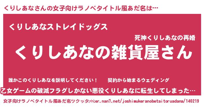 | 胡散臭い通販商品みたいなあだ名 | 『幸せが訪れる高級そうな壺…その名も「くりしあな」』 |