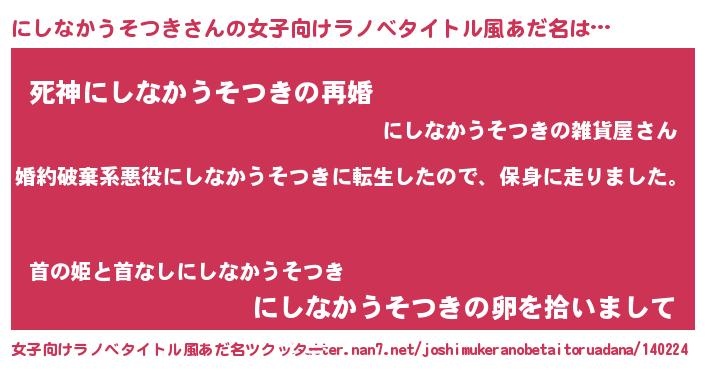 | 男性向けラノベタイトル風あだ名 | 『転生したらにしなかうそつきだった件』 |