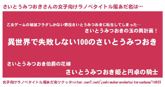 | 男性向けラノベタイトル風あだ名 | 『さいとうみつおきという概念が存在しない退屈な世界 』 |