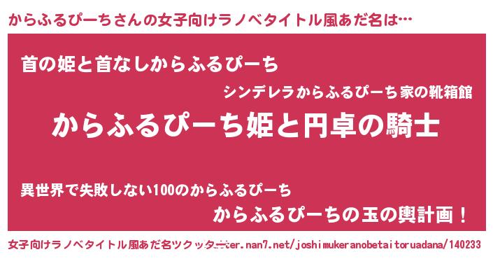 | 男性向けラノベタイトル風あだ名 | 『カラフルピーチアートオンライン』 |