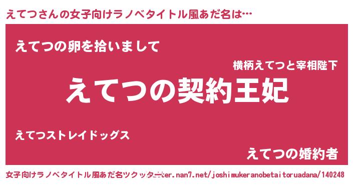 | 胡散臭い通販商品みたいなあだ名 | 『来世でも幸せになれる健康食品…その名も「えてつ」』 |