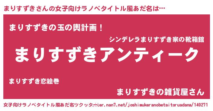 | 男性向けラノベタイトル風あだ名 | 『魔法科高校のまりすずき』 |