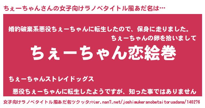 | 男性向けラノベタイトル風あだ名 | 『ノーゲーム・ノーチェーチャン』 |