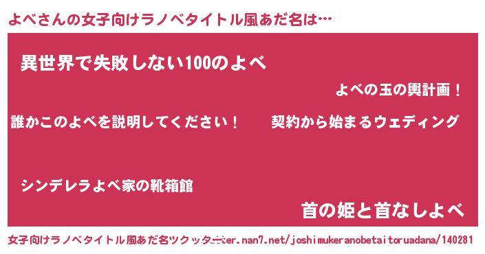 | 男性向けラノベタイトル風あだ名 | 『ヨベアートオンライン』『緋弾のヨベ』 |