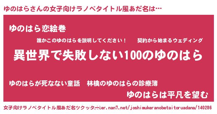 | 男性向けラノベタイトル風あだ名 | 『ゆのはらという概念が存在しない退屈な世界 』 |