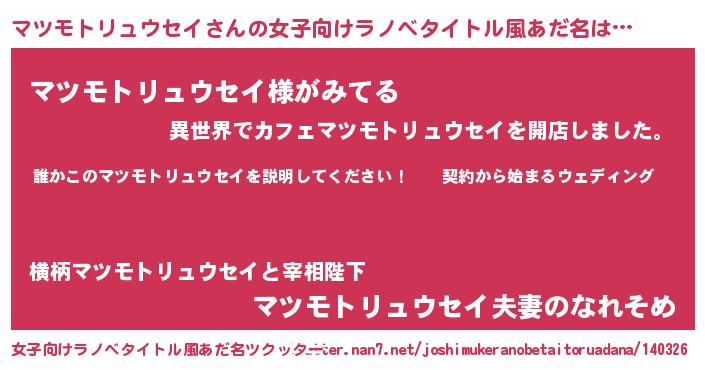 | 男性向けラノベタイトル風あだ名 | 『マツモトリュウセイアートオンライン』 |