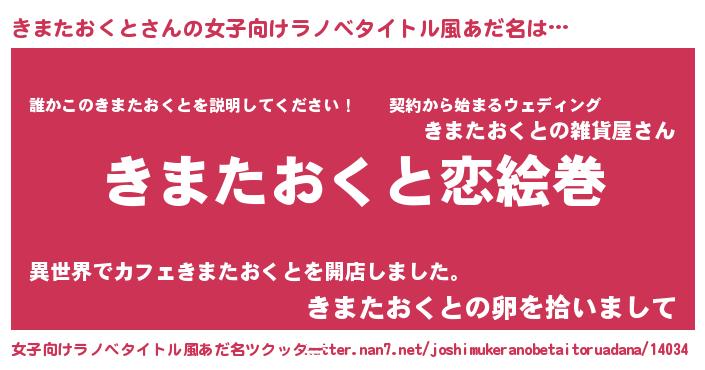 | 男性向けラノベタイトル風あだ名 | 『おまえをオタクにしてやるから、俺をきまたおくとにしてくれ! 』 |