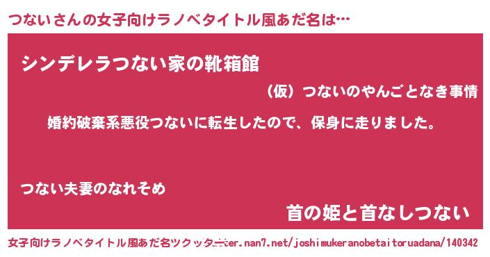 | 胡散臭い通販商品みたいなあだ名 | 『必ず成功する水晶球…その名も「つない」』 |