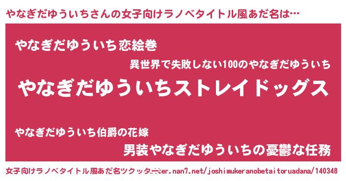 | 男性向けラノベタイトル風あだ名 | 『Re:やなぎだゆういちから始める異世界生活』 |