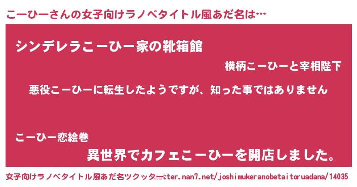 | 意味不明あだ名 | 『住所不定無職こーひー(50歳)』 |
