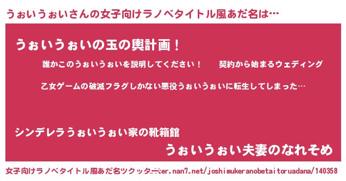 | 男性向けラノベタイトル風あだ名 | 『魔弾の王とうぉいうぉい』 |